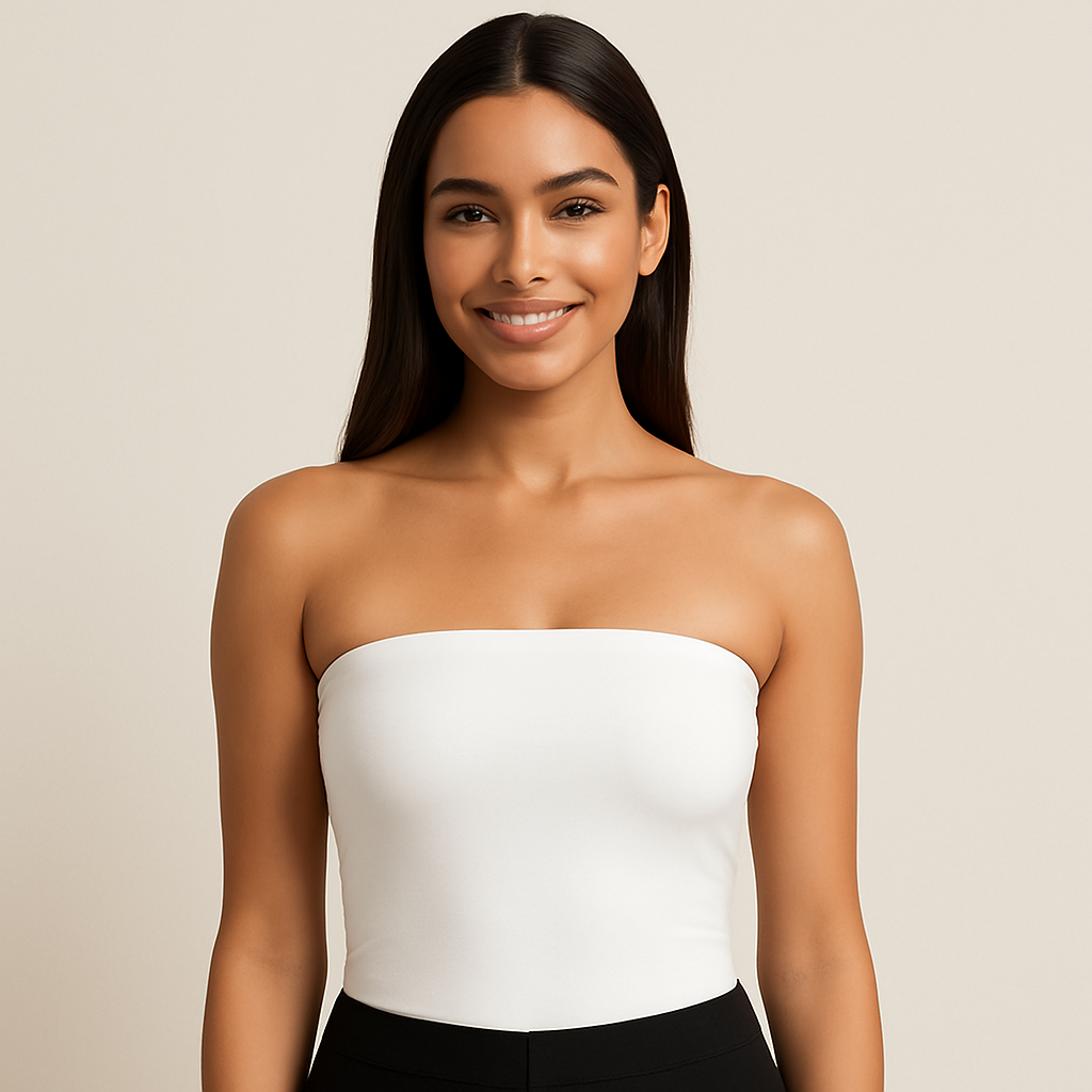 Este body estilo strapless es la definición de elegancia sencilla. Confeccionado en doble tela, lisa y sin costuras visibles, se adapta perfectamente a tu cuerpo sin marcar ni transparentar. Su diseño limpio, moderno y sin tirantes es ideal para lucir hombros y cuello con sutileza, haciéndolo perfecto para cualquier ocasión: desde una salida casual hasta una noche especial. Si buscas comodidad, versatilidad y un look que hable por sí solo, este es tu esencial definitivo.